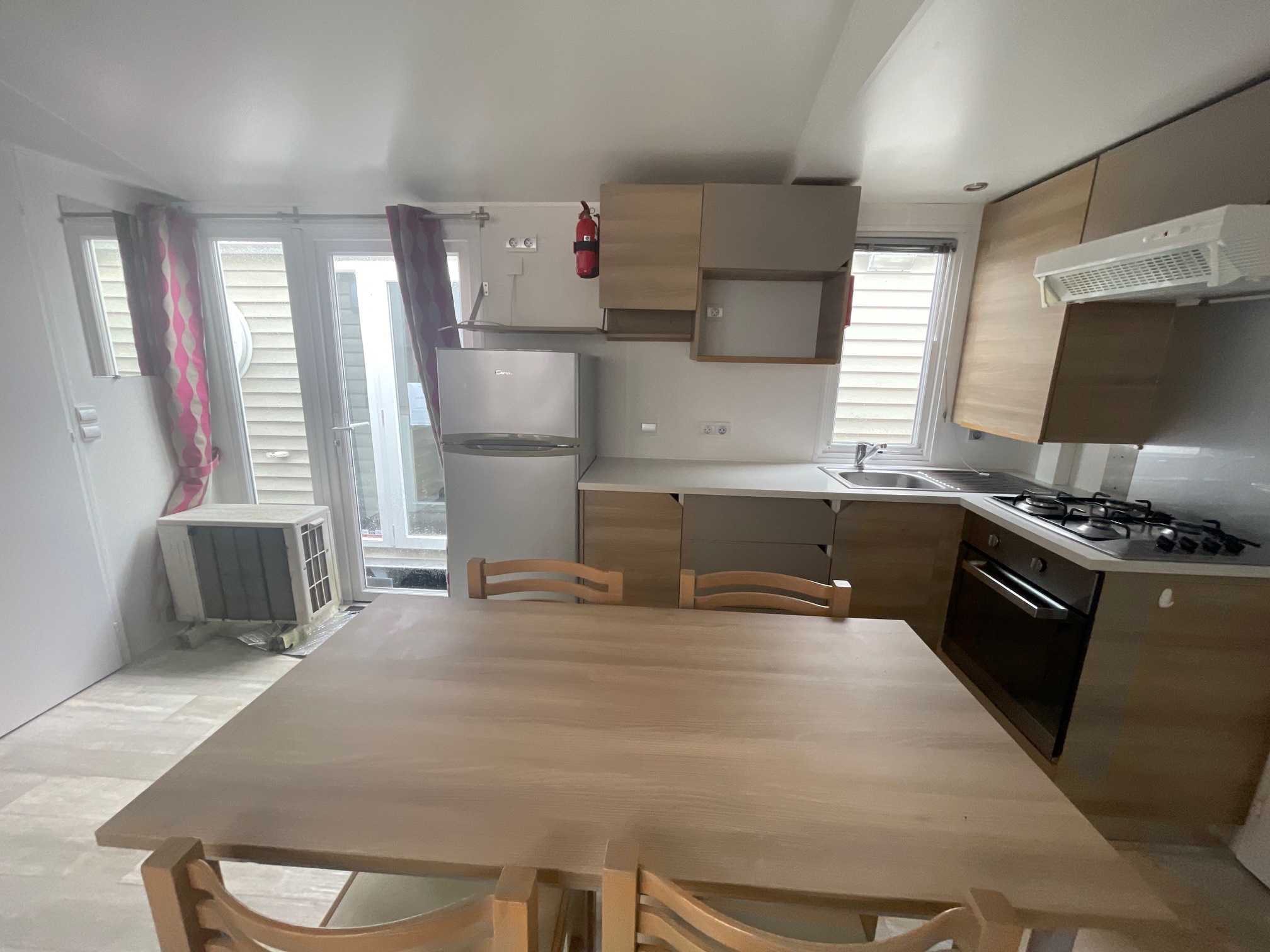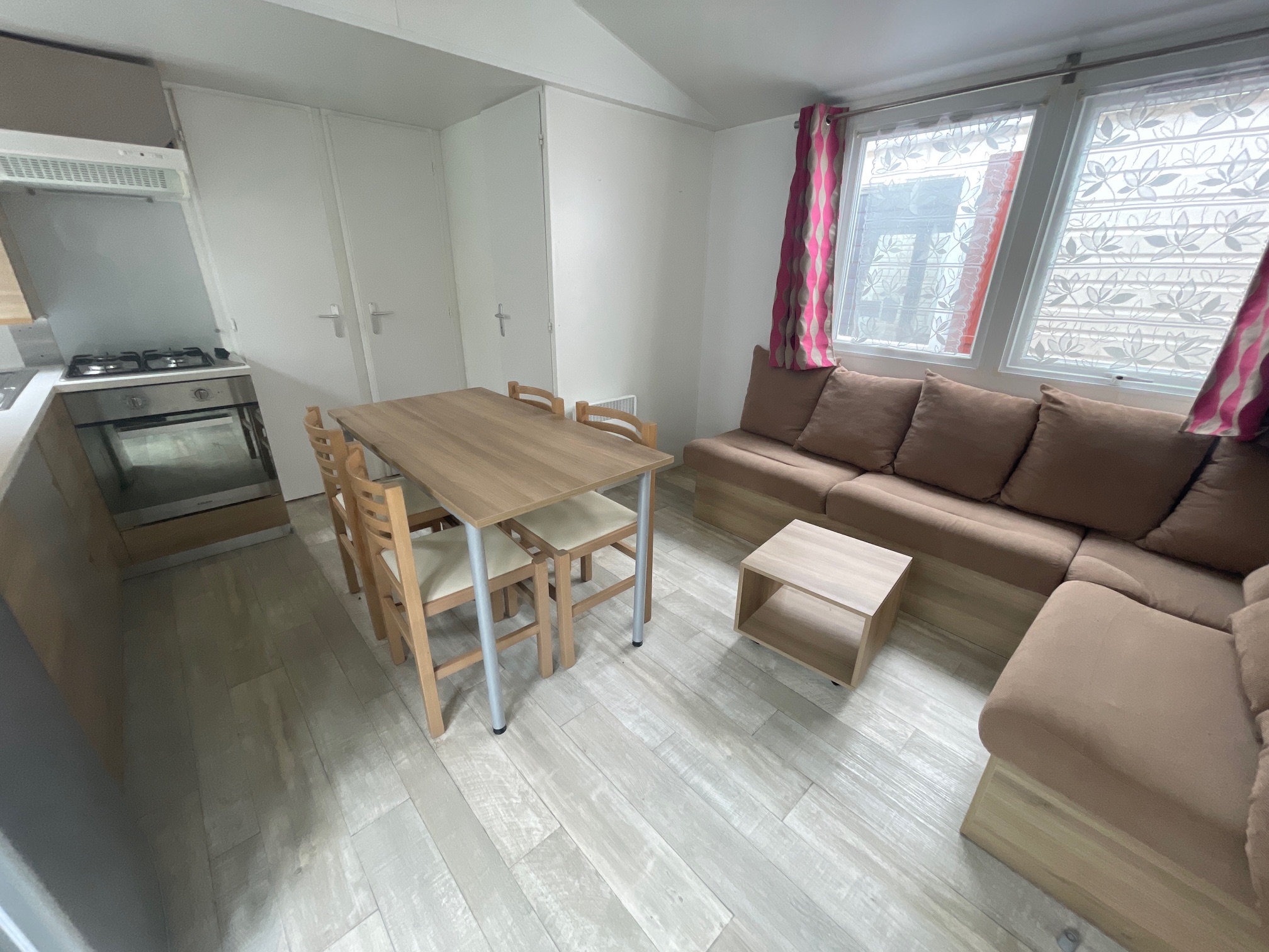 Ce mobil home d’occasion IRM ELEGANZIA, vous séduira par sa belle pièce de vie, sa cuisine mais également pas ses 3 chambres.