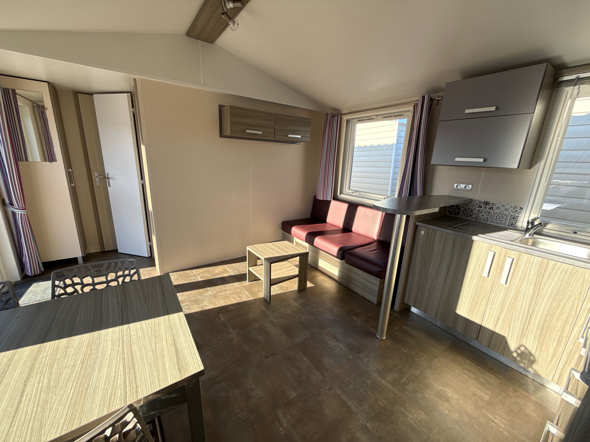 Ce mobil home d’occasion IRM SUPER TITANIA, vous séduira par ses dimensions idéales, sa belle pièce de vie mais également par ses 2 chambres.