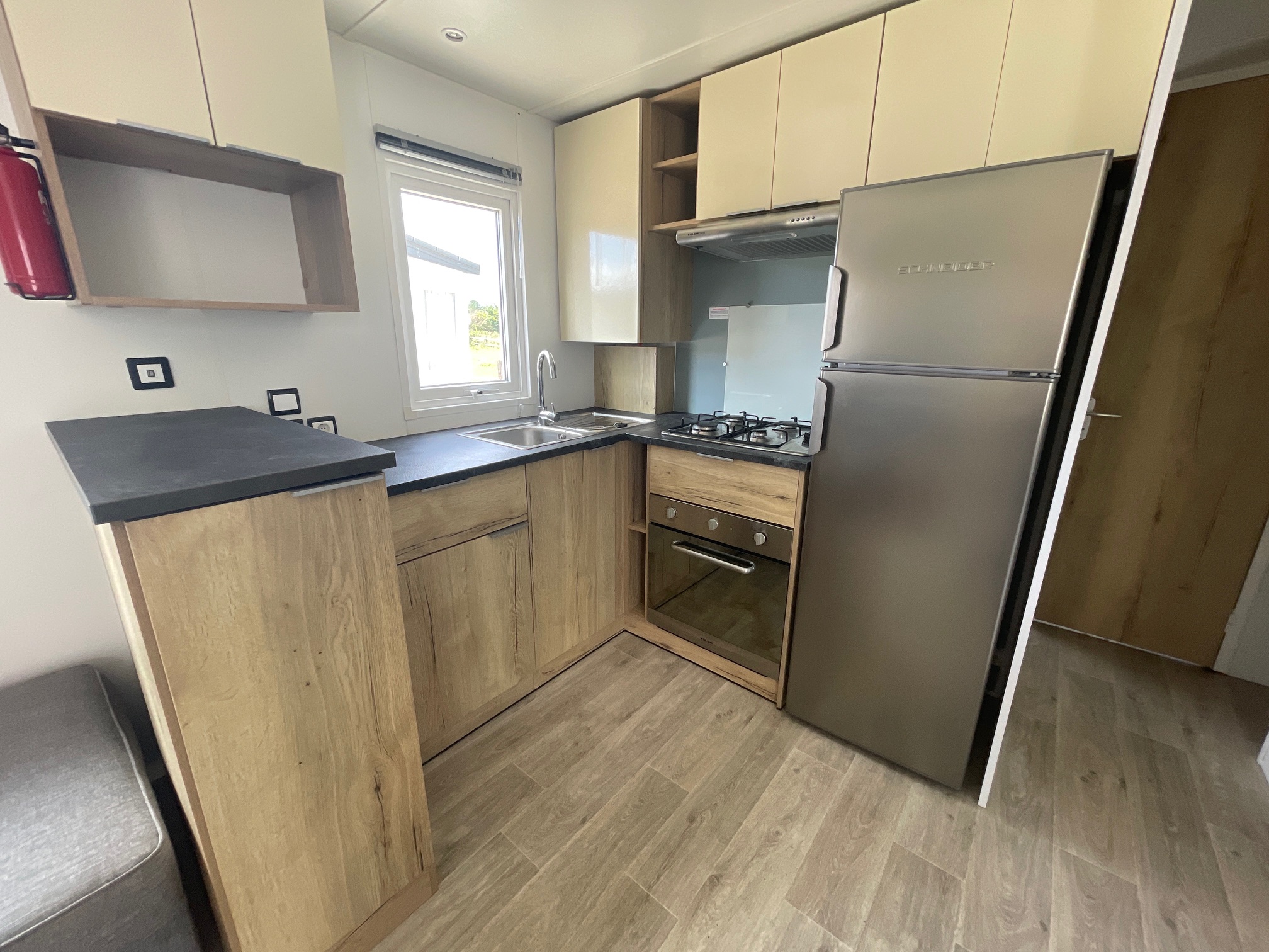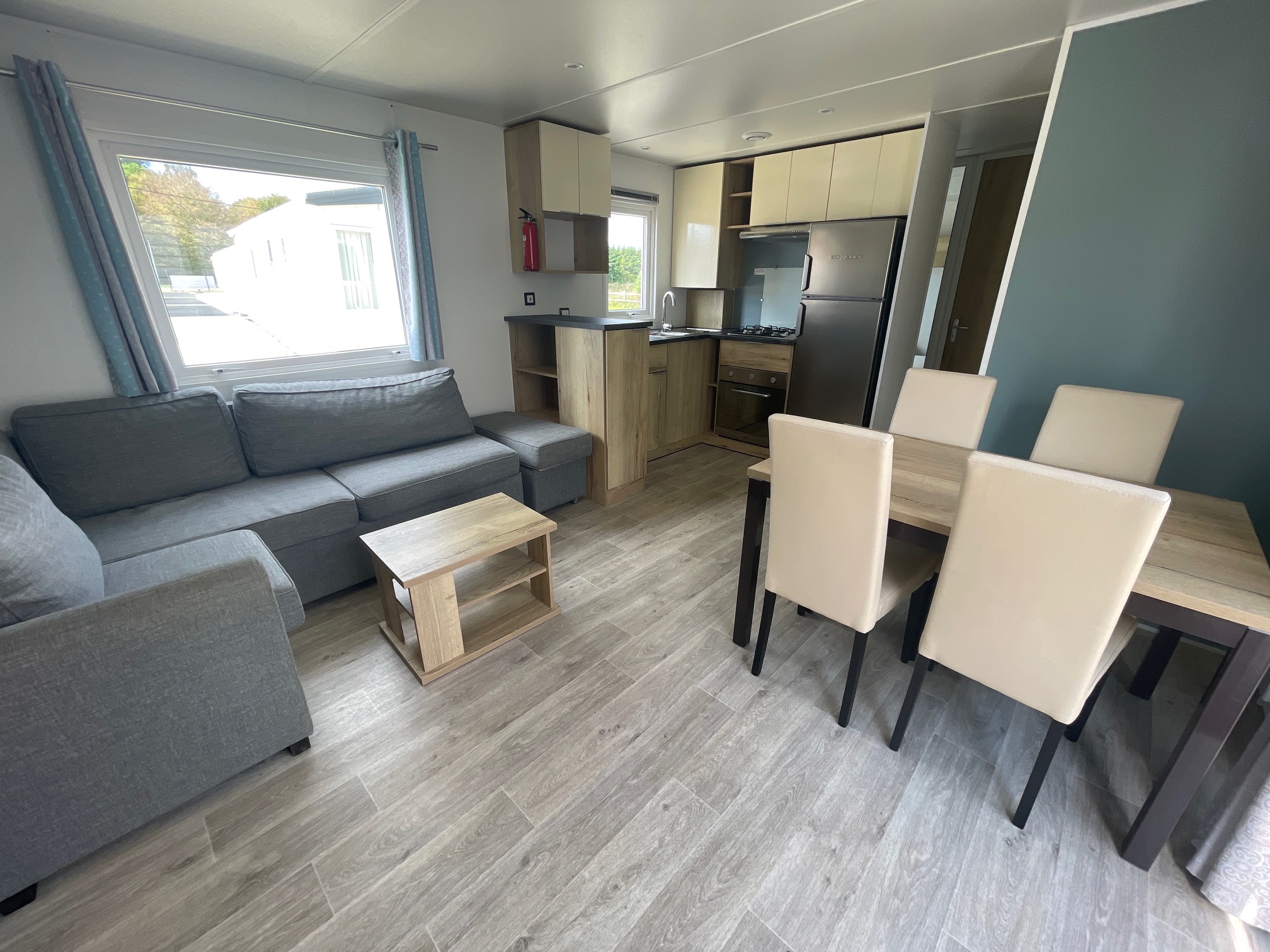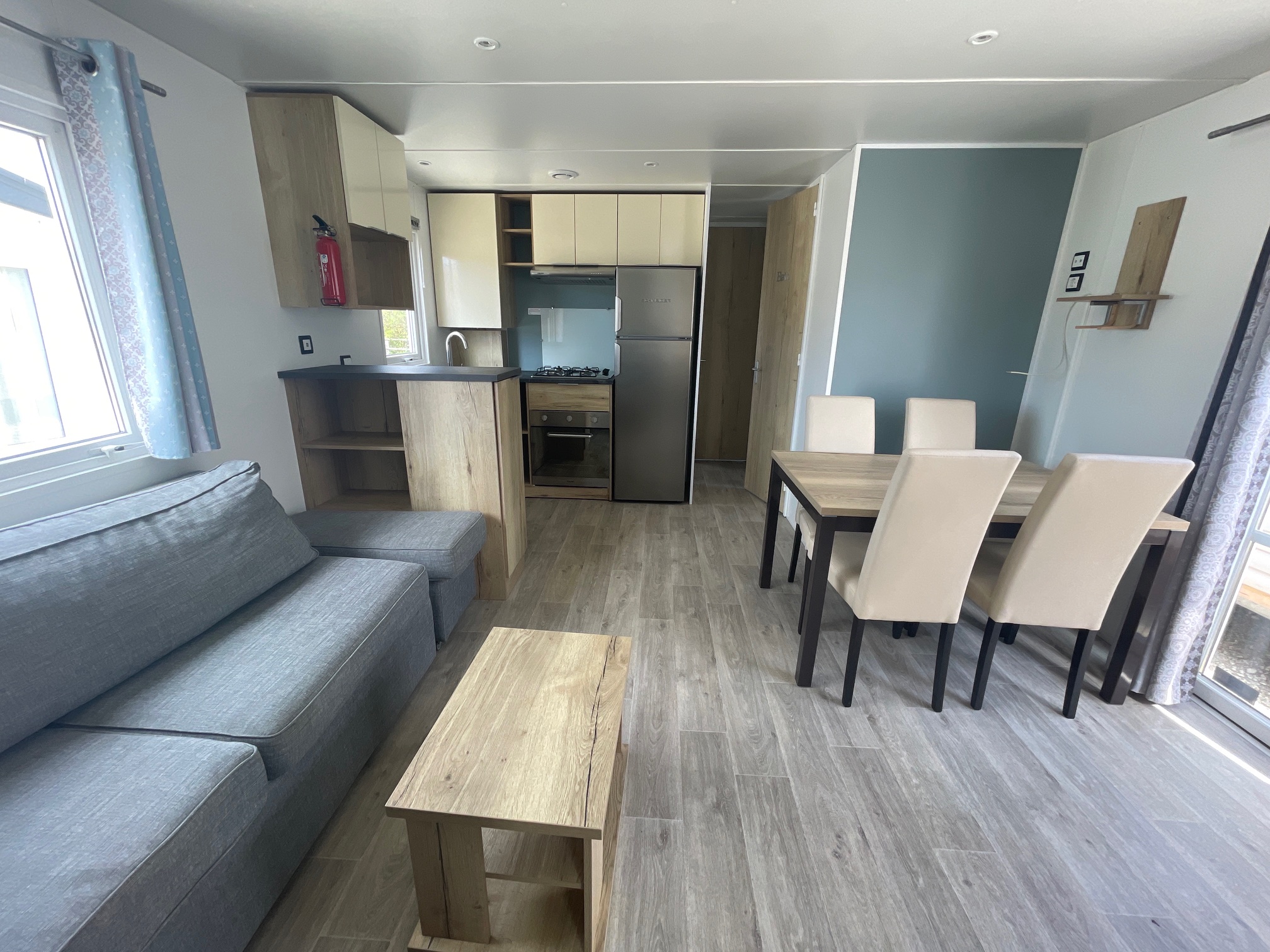 Ce mobil home d’occasion RAPIDHOME BORA BORA, vous séduira par ses grandes dimensions, sa belle pièce de vie, ses 3 chambres mais surtout pour sa chambre parents avec un grand dressing.