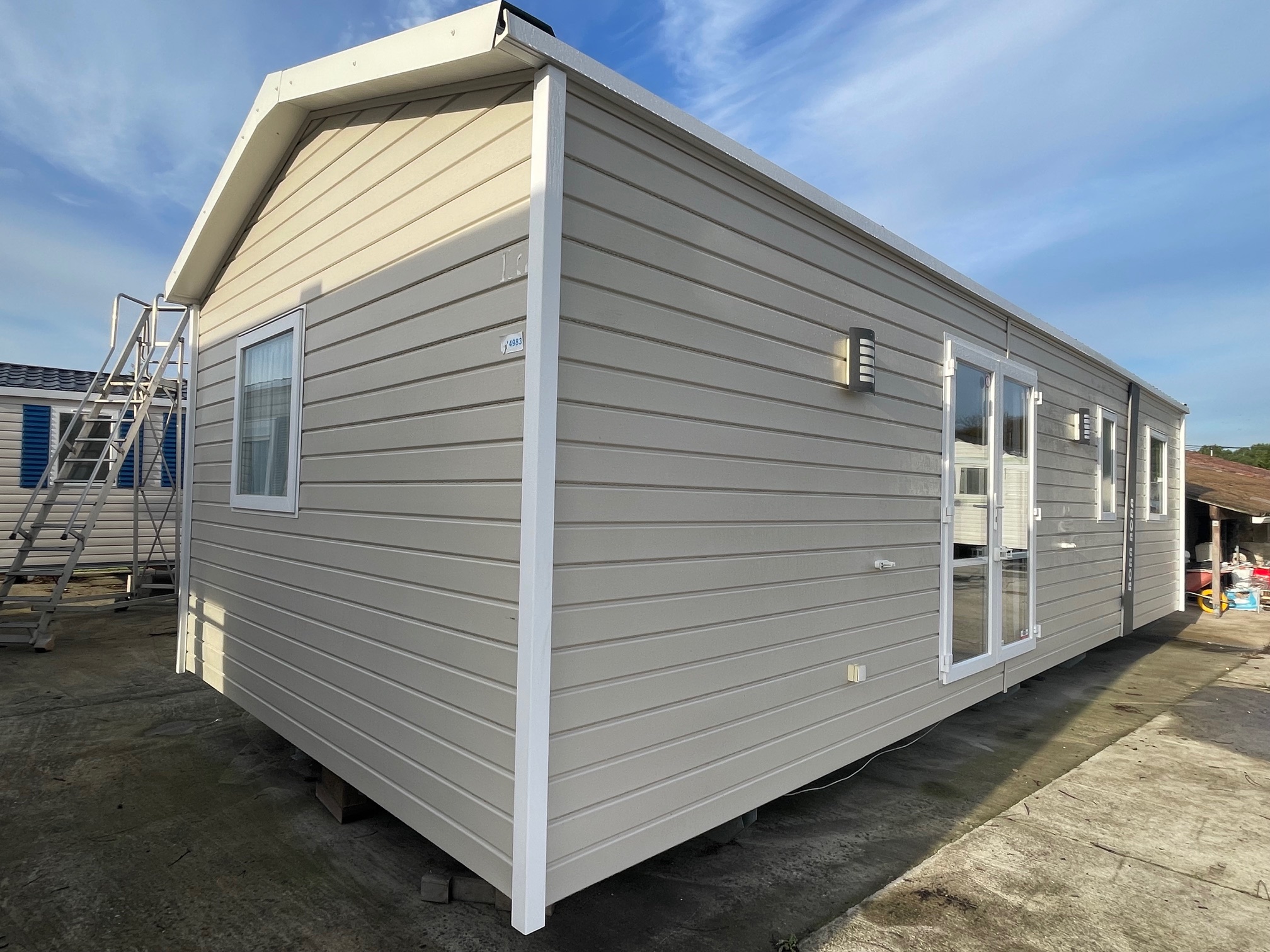 Mobil home d’occasion RAPIDHOME BORA BORA, d’année 2019, toit double pente tuilé, bardage PVC, double vitrage, 10.40x4m soit 40m² et 3 chambres 1 salles de bains