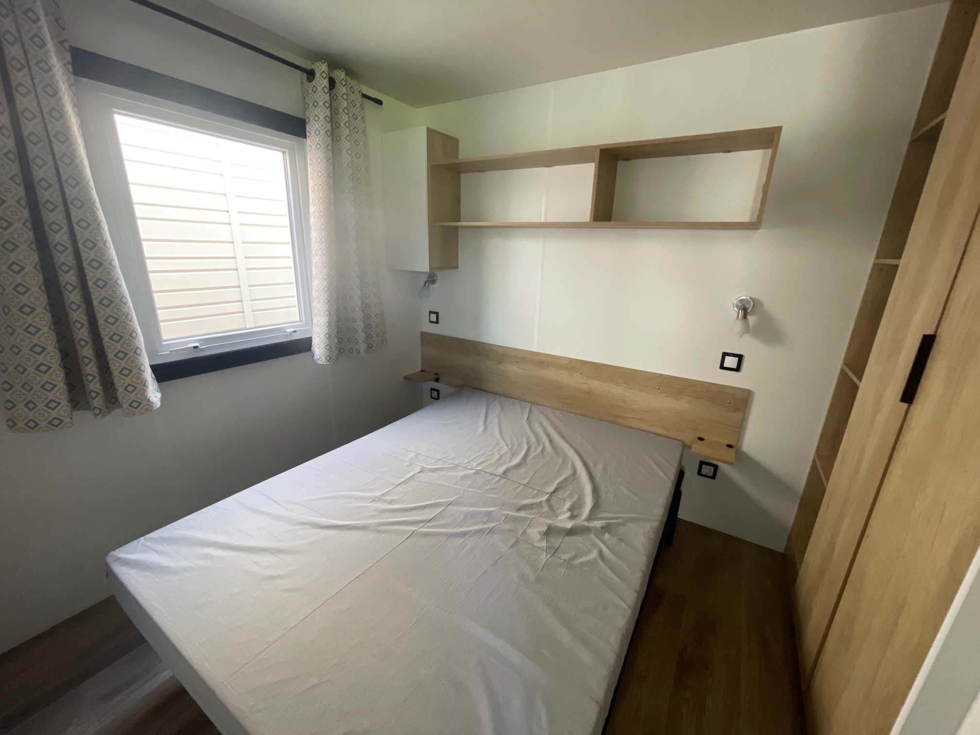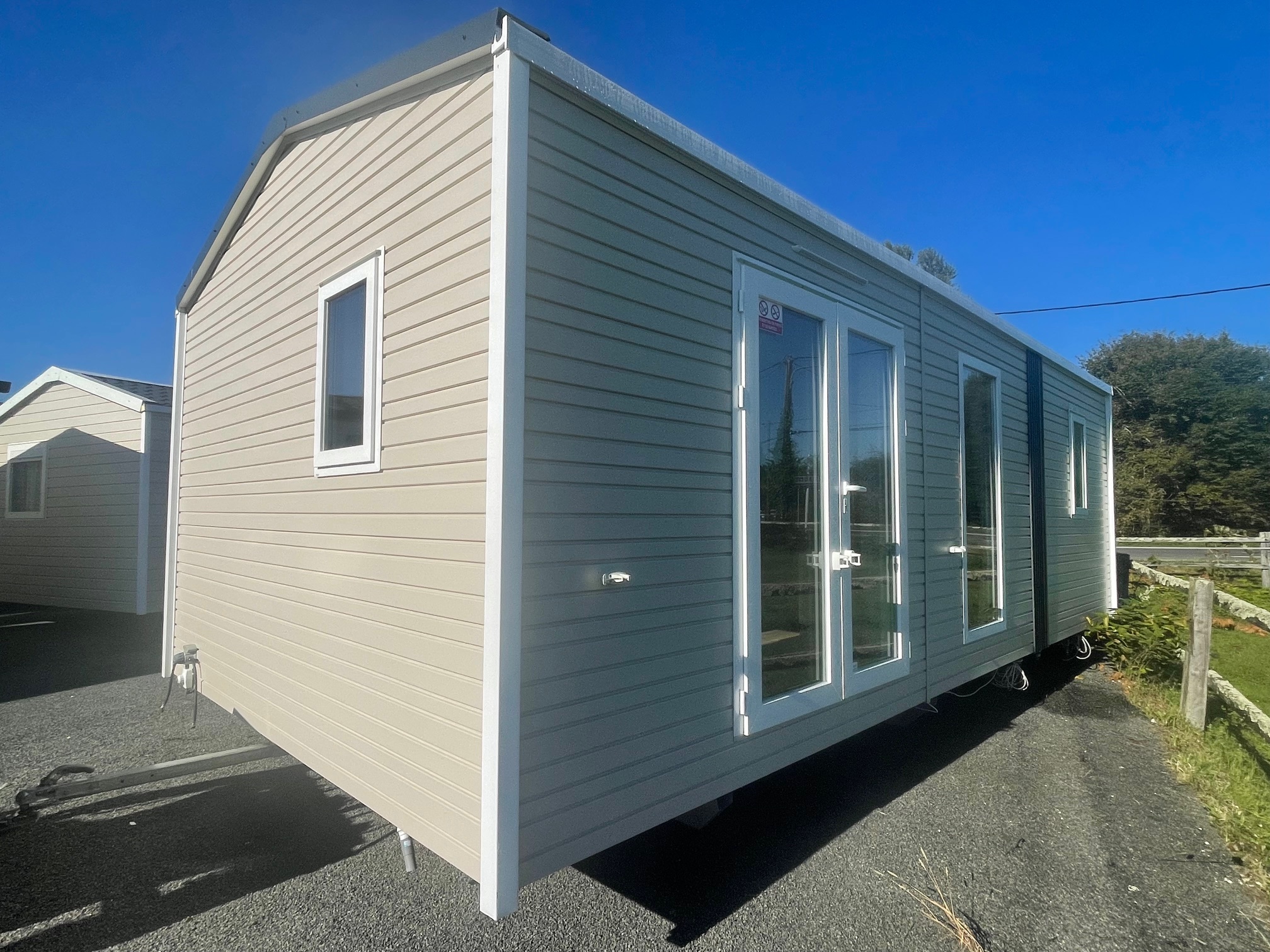 Mobil home d’occasion RAPIDHOME SALSA, d’année 2021, toit double pente tuilé, bardage PVC, double vitrage, 8x4m soit 32m² et 2 chambres.