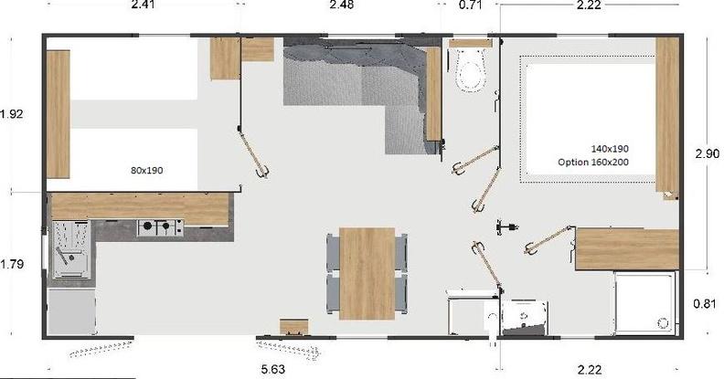 Ce mobil home d’occasion RAPIDHOME SALSA, vous séduira par sa belle pièce, ses dimensions idéales, mais également par ses 2 chambres et sa cuisine décalée avec ouverture direct sur l’extérieur.