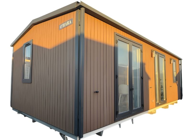 Mobil home d’occasion OHARA 844, d’année 2023, toit double pente tuilé, bardage PVC et double vitrage, 2 chambres, 8.40x4m soit33m².