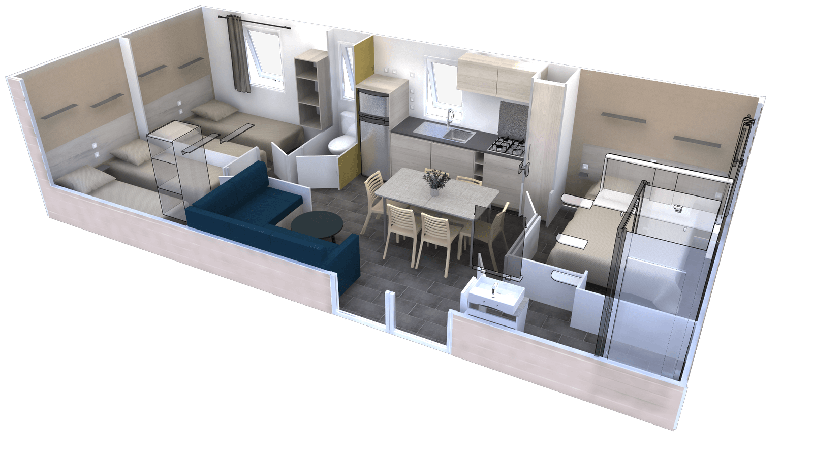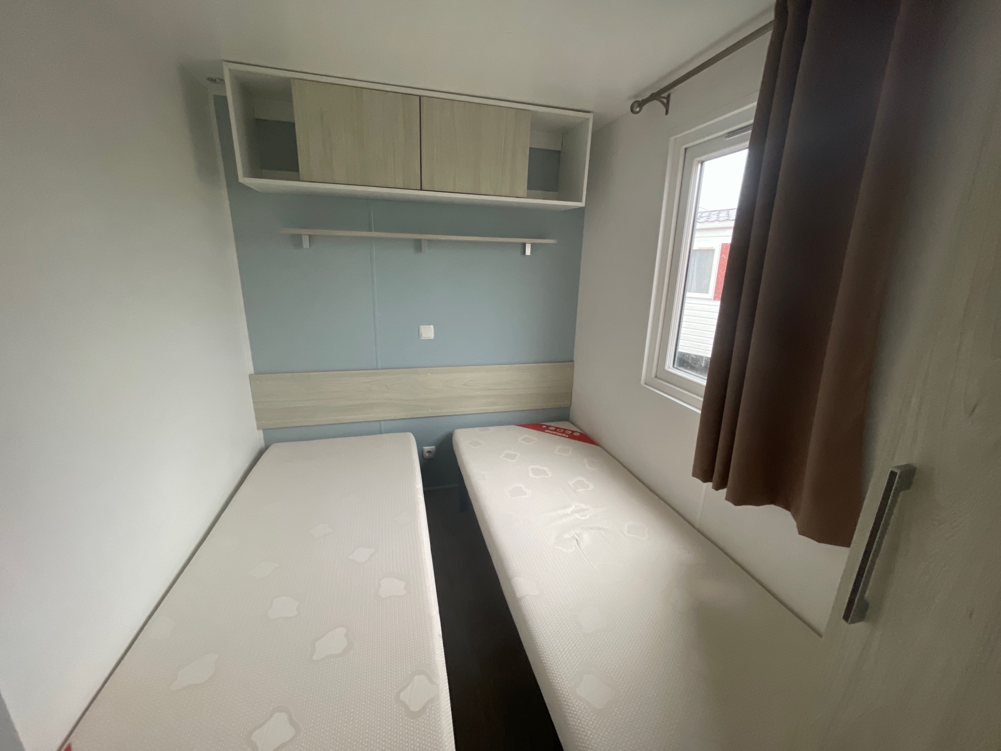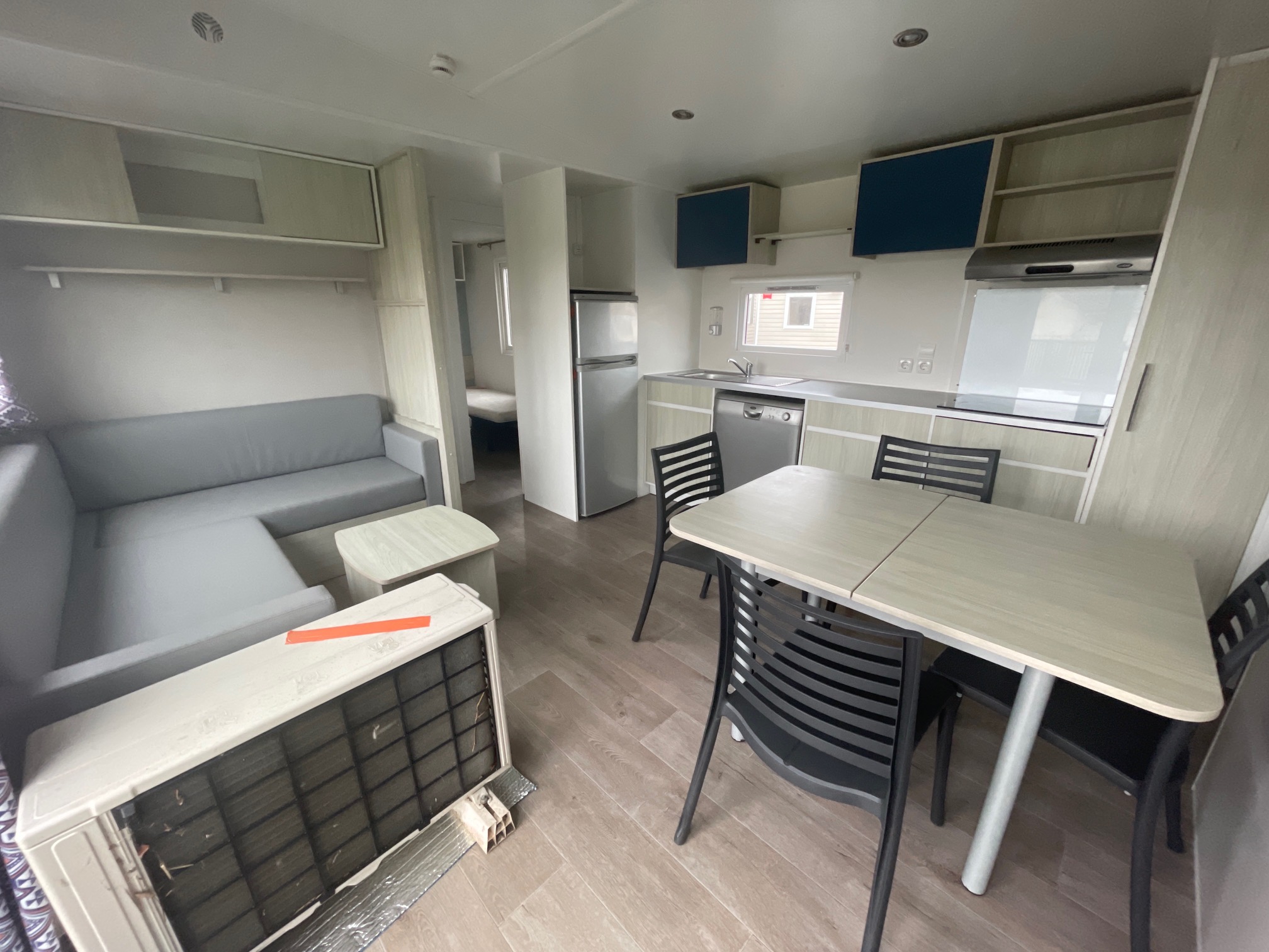 Ce mobil home d’occasion TRIGANO EVO 35, vous séduira par bardage bois, sa belle pièce de vie mais également par ses 3 chambres.