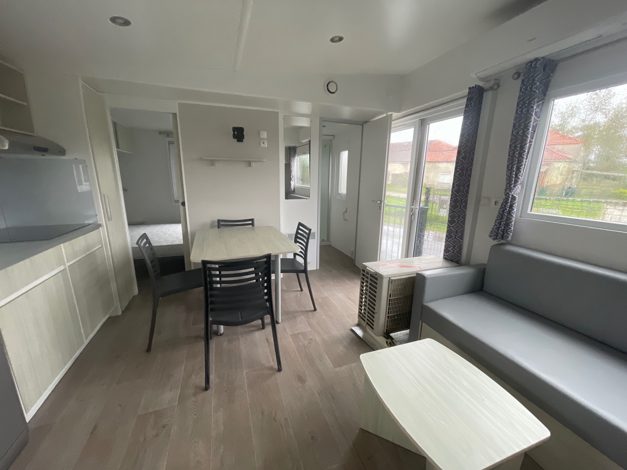 Ce mobil home d’occasion TRIGANO EVO 35 est visible sur notre parc exposition à Etauliers en Gironde.