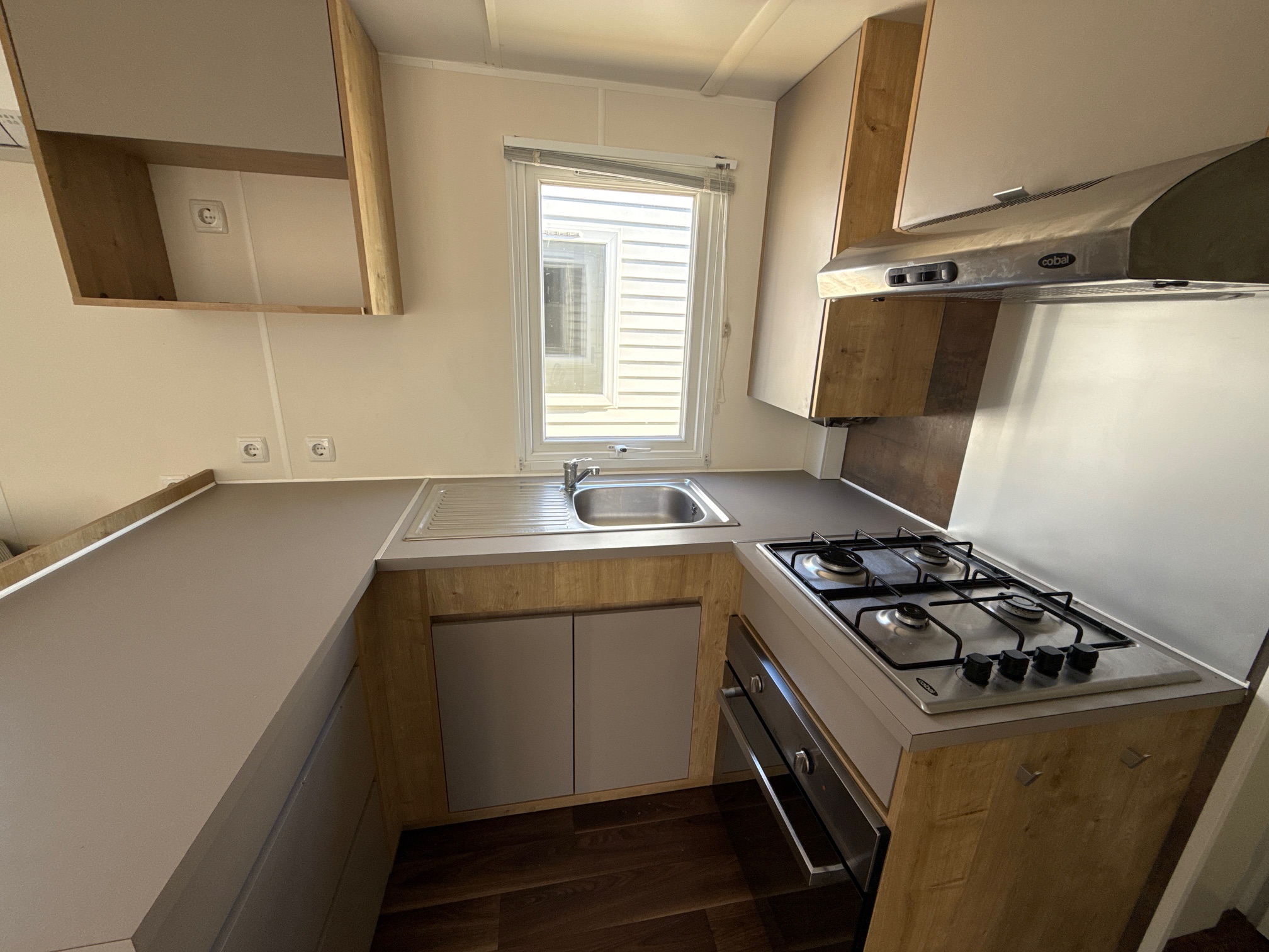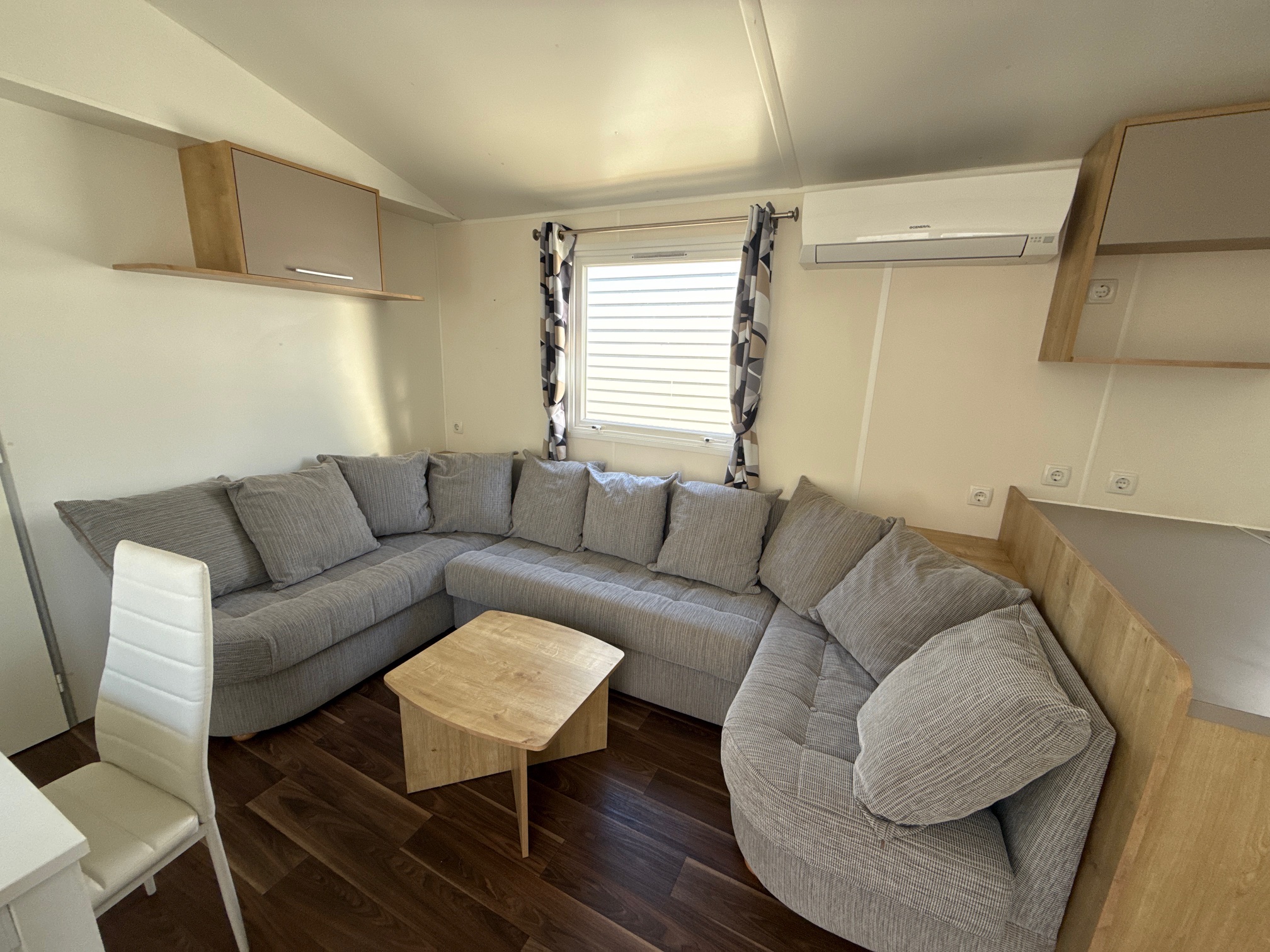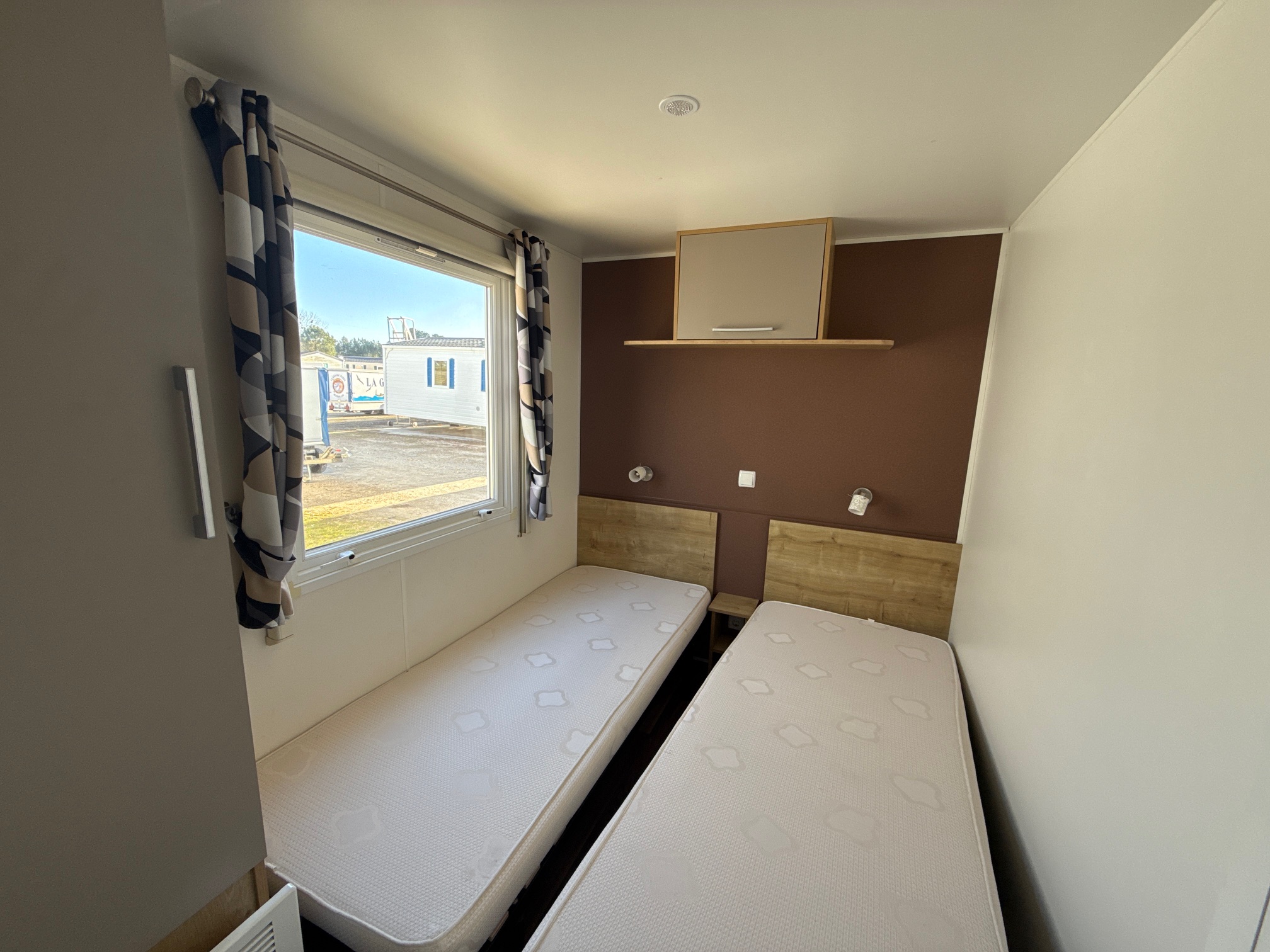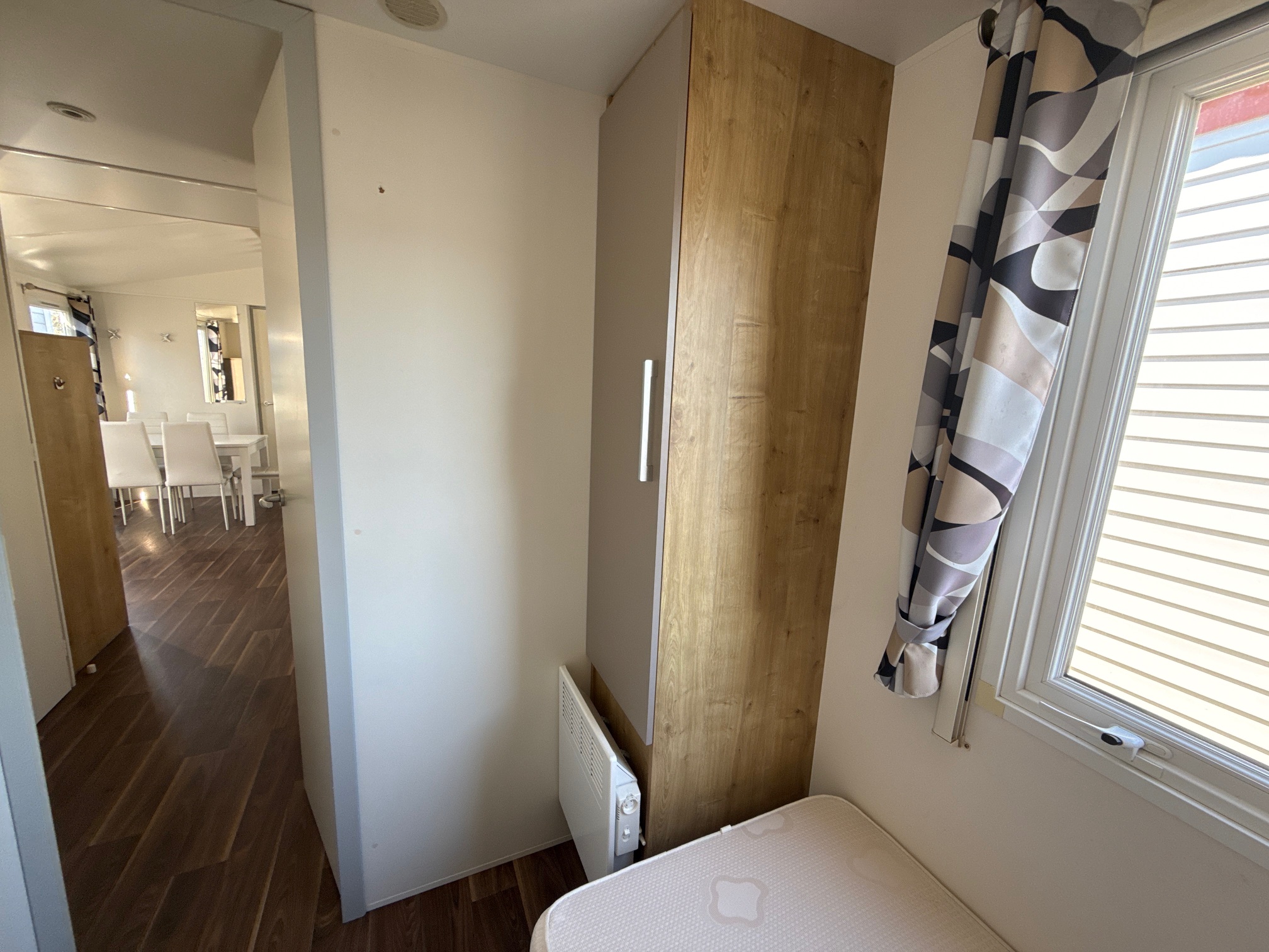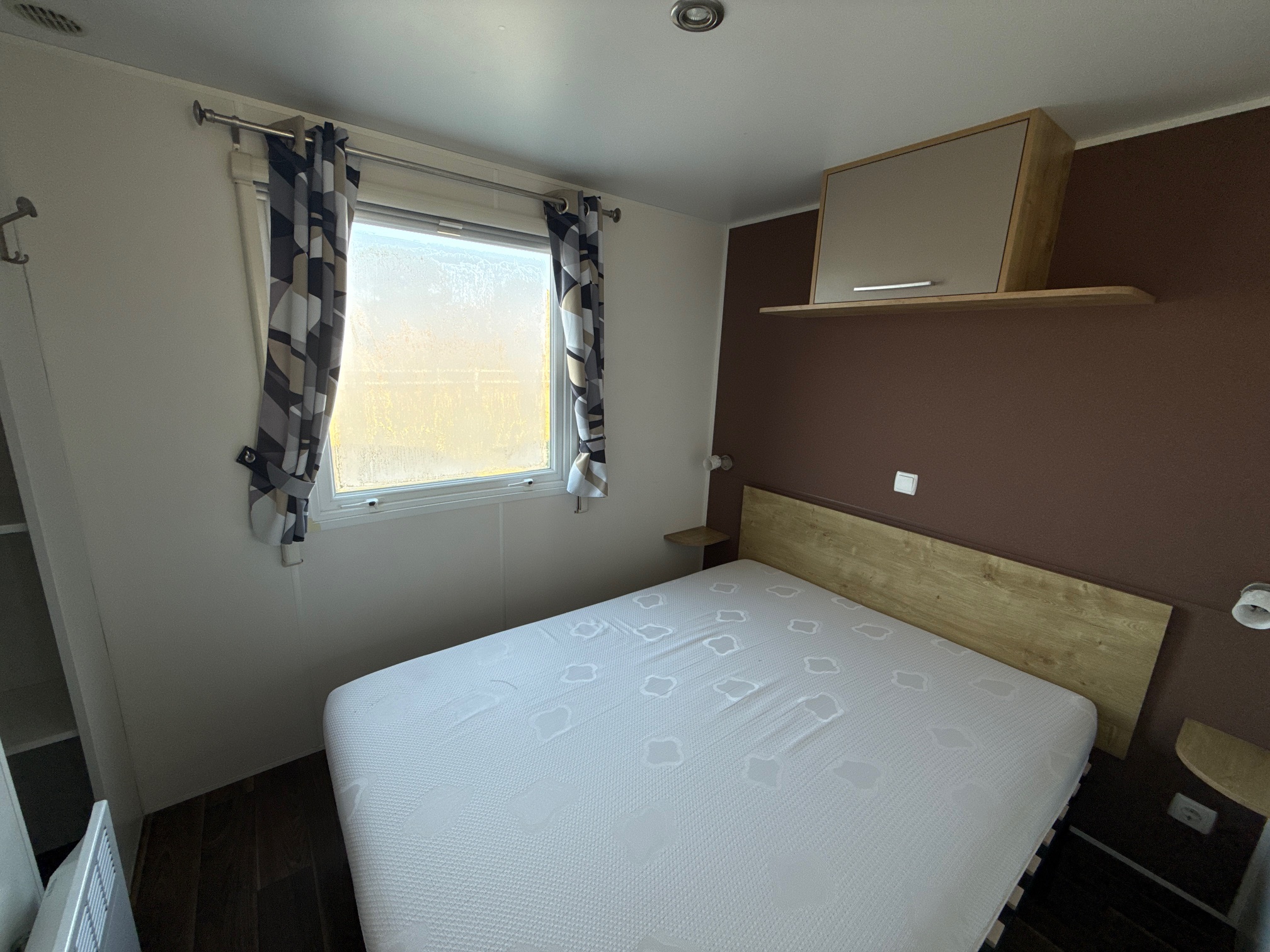Ce mobil home d’occasion TRIGANO EVO 40, vous séduira par ses grandes dimensions, sa belle pièce de vie mais également par ses 3 chambres dont la chambre parents avec salle de bains privative.