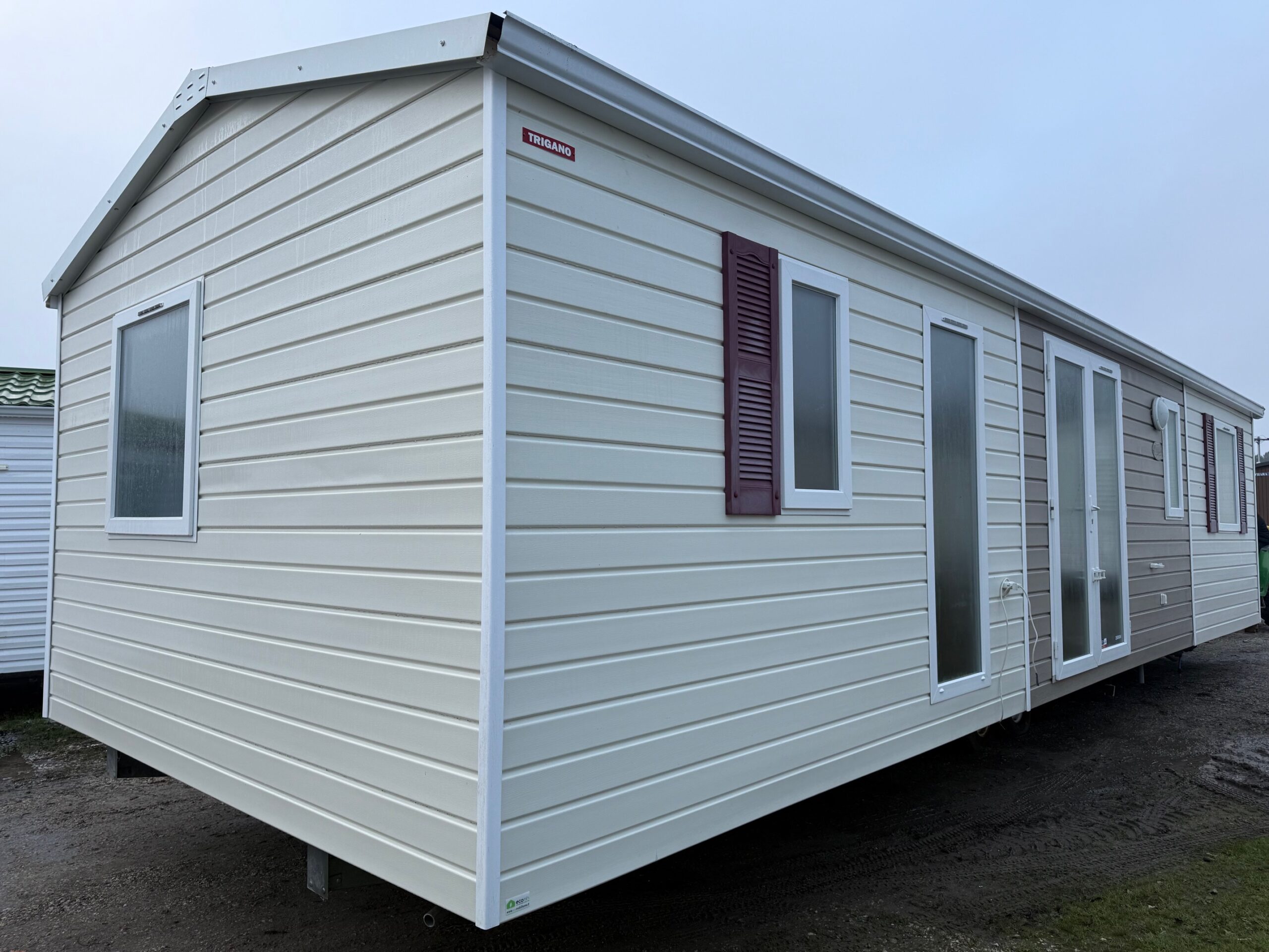 Mobil home d’occasion TRIGANO EVO 40, toit double pente tuilé, bardage PVC, double vitrage, 10x4m soit 40m² et 3 chambres et 2 salles de bains.