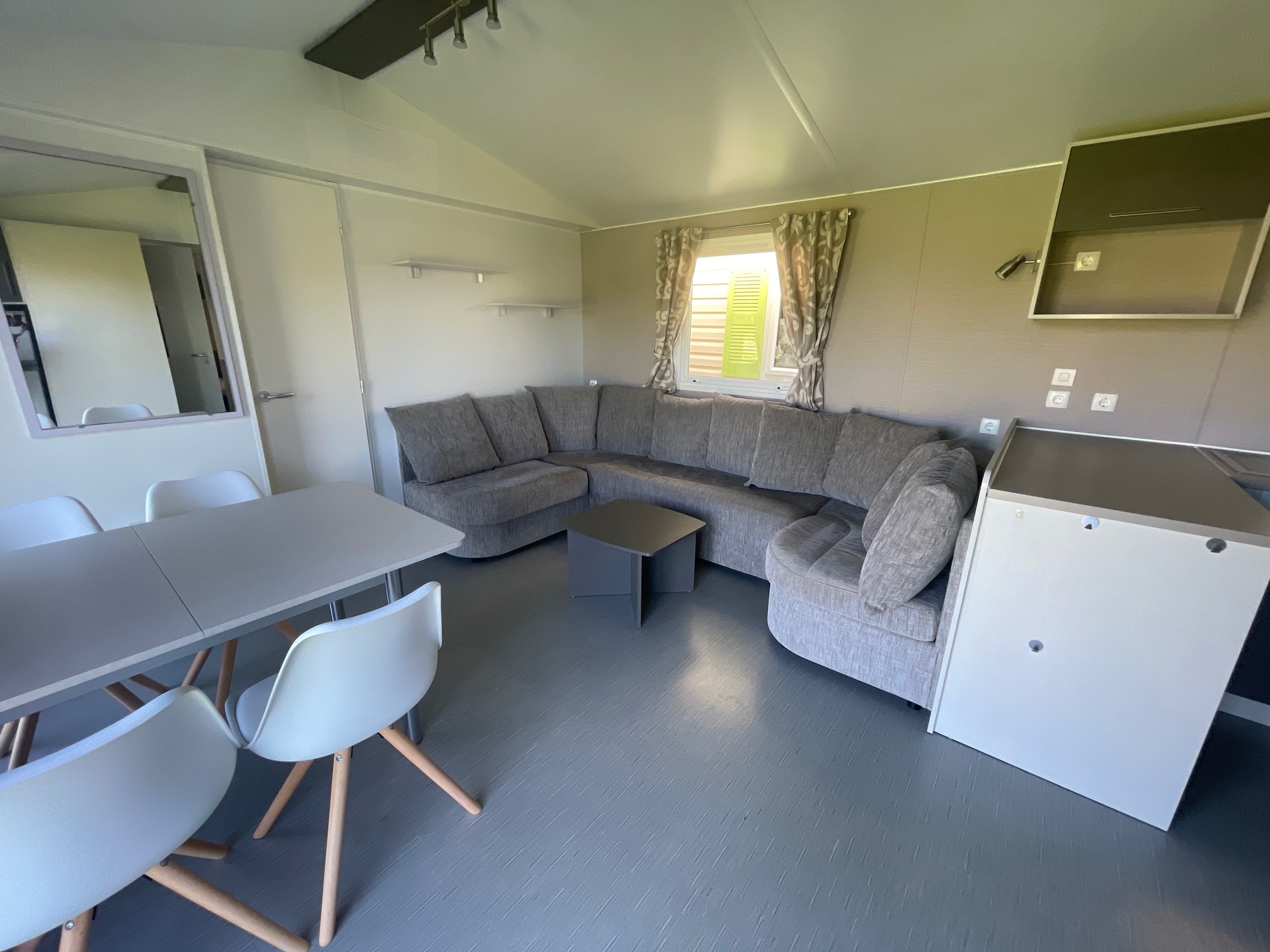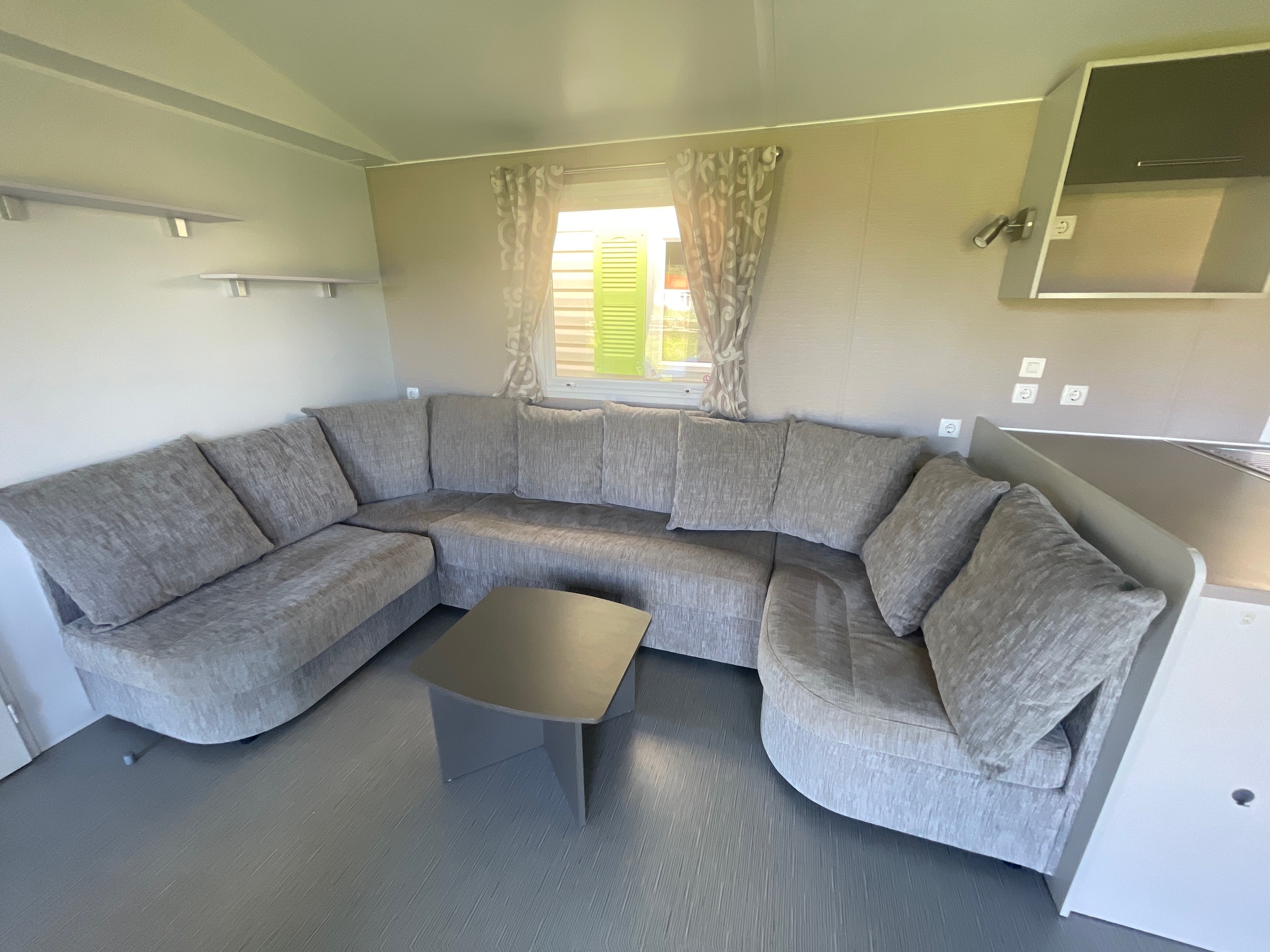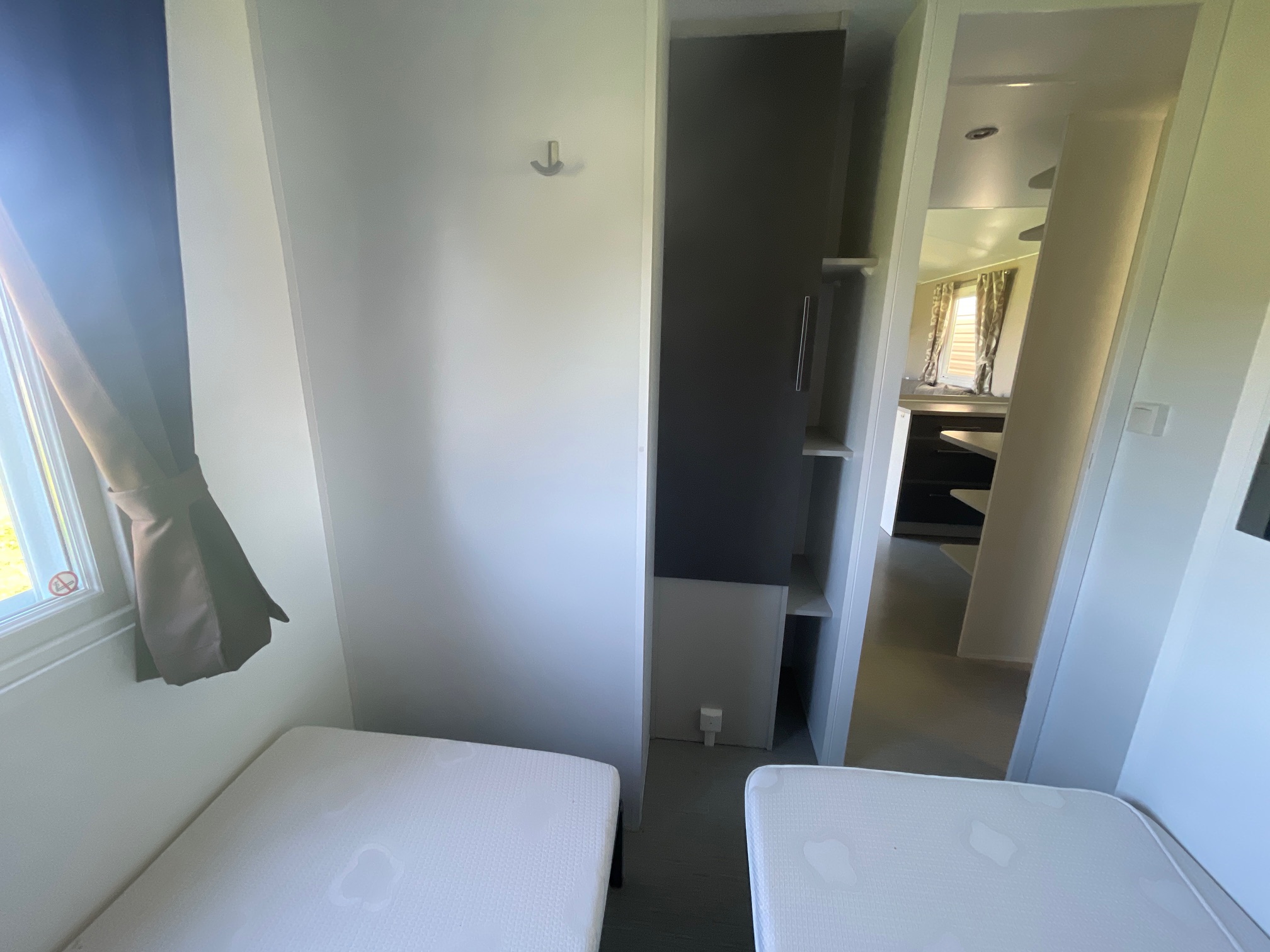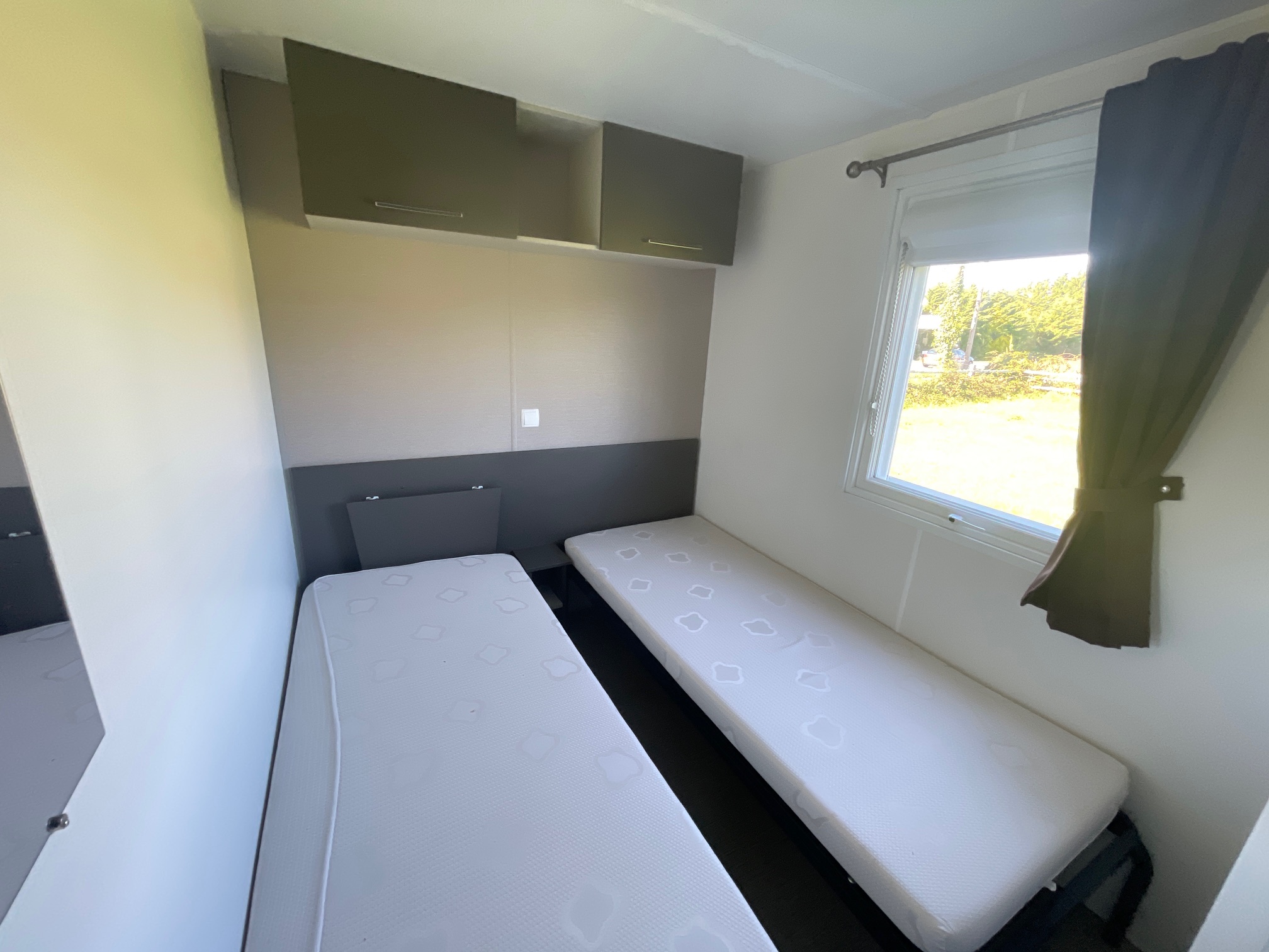 Ce mobil home d’occasion TRIGANO INTUITION 40, vous séduira par sa belle pièce de vie, sa cuisine bien équipée mais également par ses 3 chambres dont la chambre parentale avec salle de bains privative