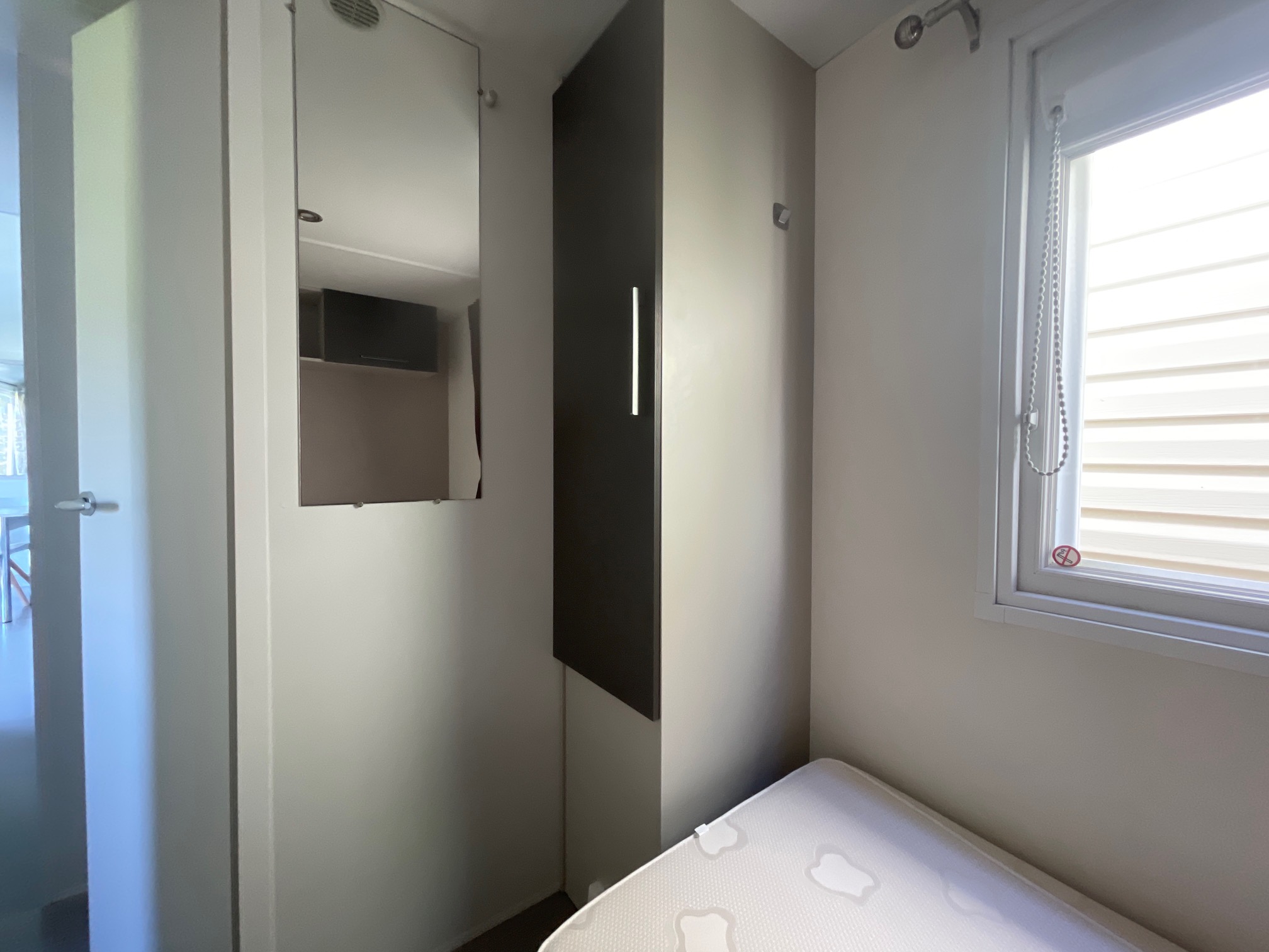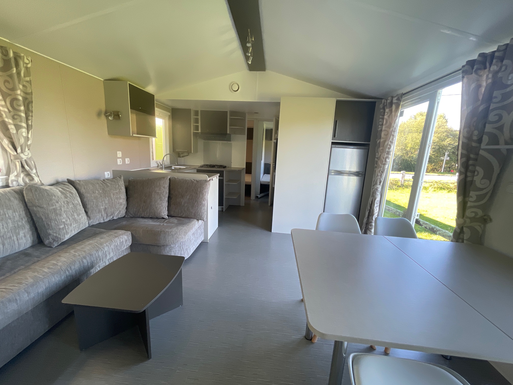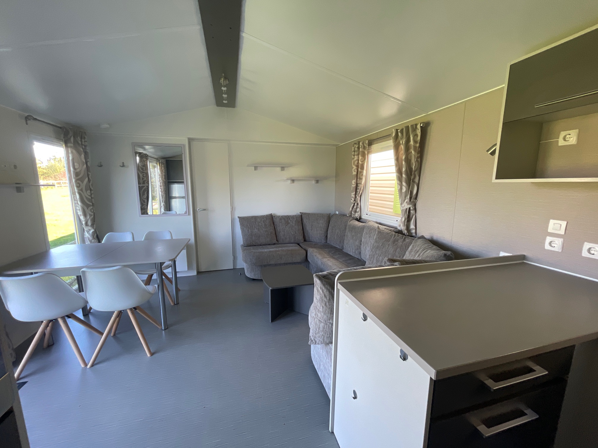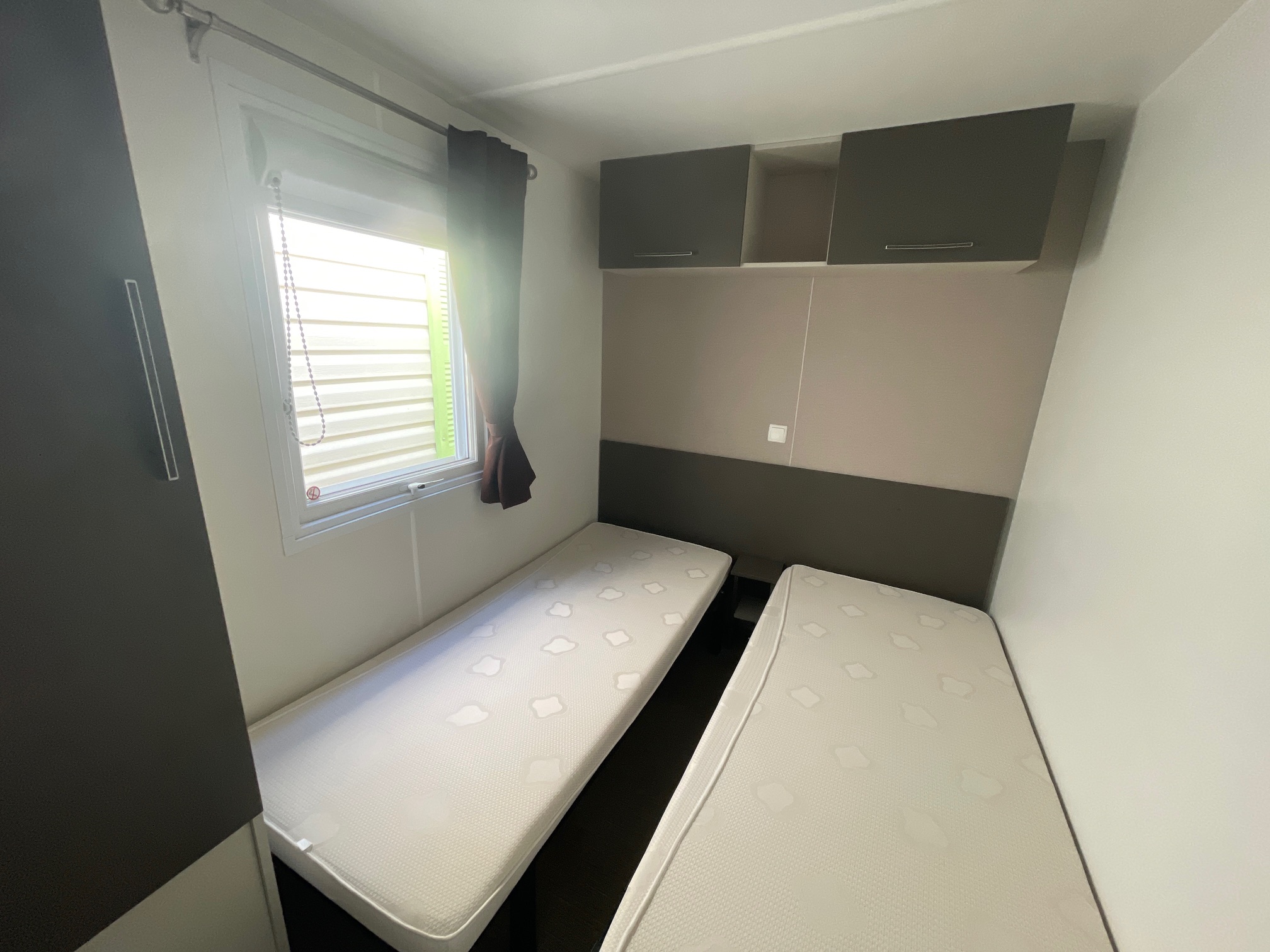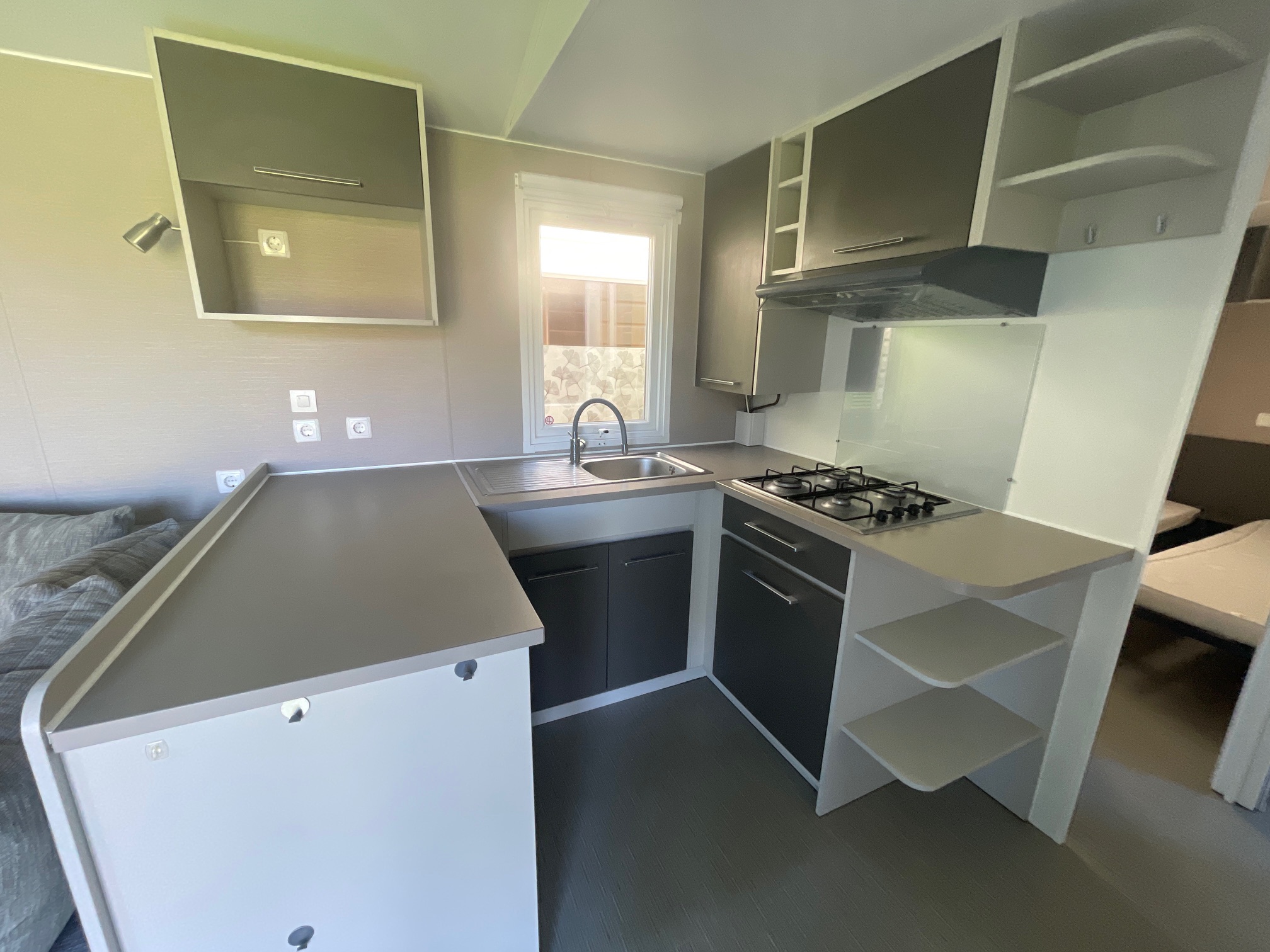Ce mobil home d’occasion TRIGANO INTUITION 40, vous séduira par sa belle pièce de vie, sa cuisine bien équipée mais également par ses 3 chambres dont la chambre parentale avec salle de bains privative