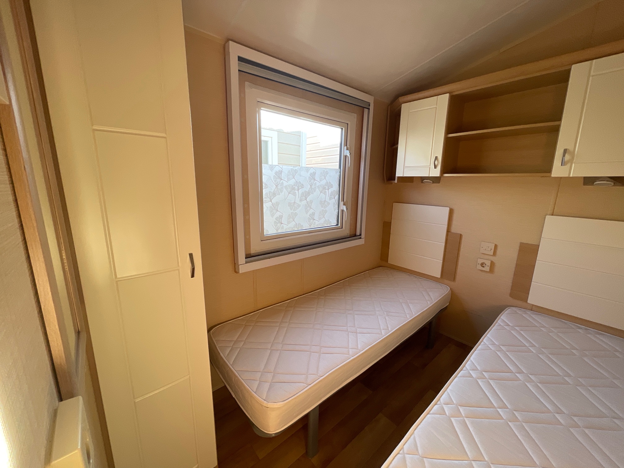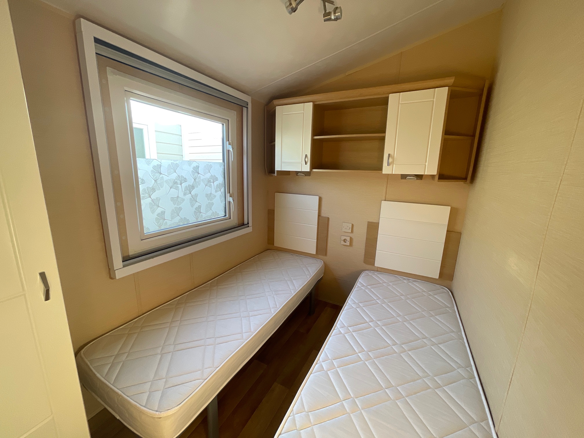 Mobil home d’occasion, WILLERBY VILLA DELUXE, toit double pente tuilé, bardage PVC, double vitrage, 10.80x4m soit 40m² et 3 chambres / 2 salles de bains.